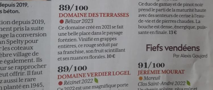Première apparition dans la Revue du Vin de France - Cuvée Belizar 2023